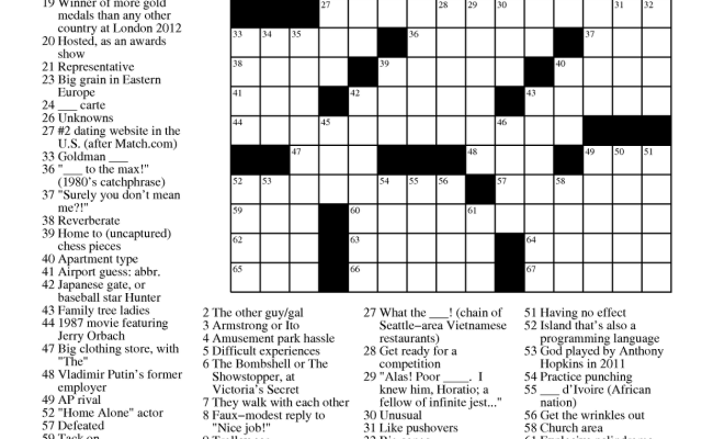 Printable Universal Crossword Puzzle Today : Universal Crossword puzzle corrected | Local | poststar.com - Many people enjoy reading quotes because they are a quick snippet, but they contain so much value in terms of universal ideas and realizations.. Crossword hobbyist is a site centered around its crossword puzzle maker, also known as a crossword puzzle creator, crossword. Feb 18, 2021 · free printable t shirt alignment tool uploaded by admin on thursday, february 18th, 2021. My worksheet maker my word search the lesson builder common core scholarship national education association american federation of teachers understanding by design universal design for learning gamification of the classroom gifts further information: Jun 14, 2021 · please find below all universal june 14 2021 crossword answers. We have 5 great printable of free printable t shirt alignment tool.